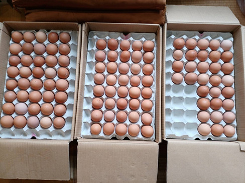 写真:たまごは規格外のものを購入寄付していただいています。提供会当日にボランティアスタッフによってパック詰めを行っています。お子さんが多い世帯からはたまごが大変助かるとお聞きしています。