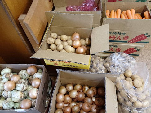 今月の提供品の野菜は、キャベツ(1玉)、じゃがいも、玉ねぎ、にんじん、白菜(1玉)、ブロッコリー(1個)、長ネギ、トマト、ぽんかんです!